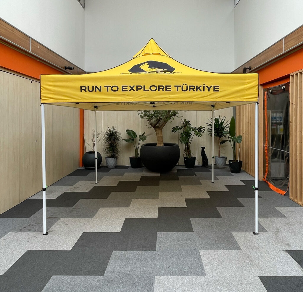 Gazebo tentelerimiz yalnızca bir gölgelik değil; aynı zamanda açık hava etkinliklerinizde markanızı tanıtmanın etkili bir yolu ve profesyonel bir dokunuştur.